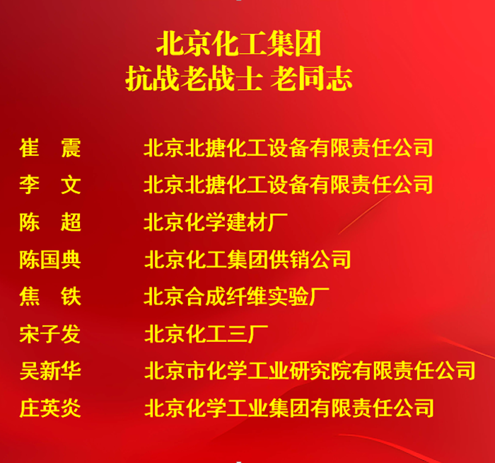 此次纪念章的颁发,既是对革命先辈的礼敬,也是一次深刻的党性教育,更是对那段伟大抗战历史的铭记和对伟大抗战精神的传承。北京化工集团全体干部职工将铭记历史功勋,赓续红色血脉,将抗战精神转化为推动集团发展的强大动力,在新时代新征程上续写更辉煌的高质量发展篇章!