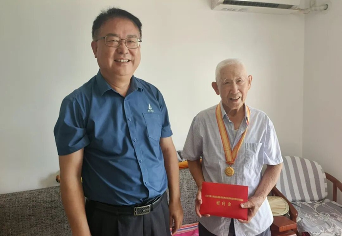 北京化工集团党委高度重视纪念章颁发工作,党委书记、董事长陈宇等集团领导带队向抗战老战士、老同志吴新华、焦铁、崔震颁发纪念章,向老战士、老同志们致以崇高敬意、亲切慰问。